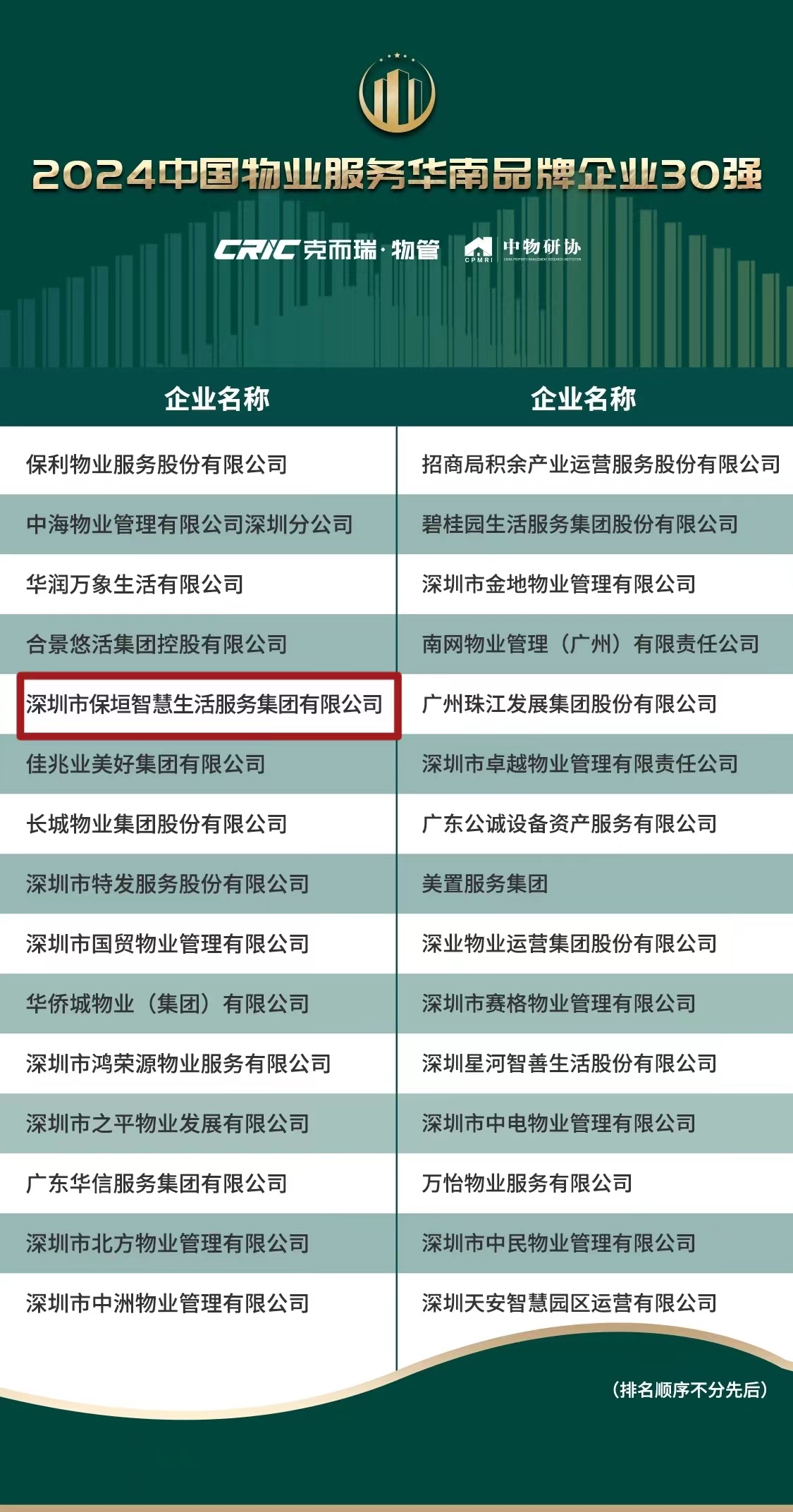 △ 2024中国物业服务华南品牌企业30强